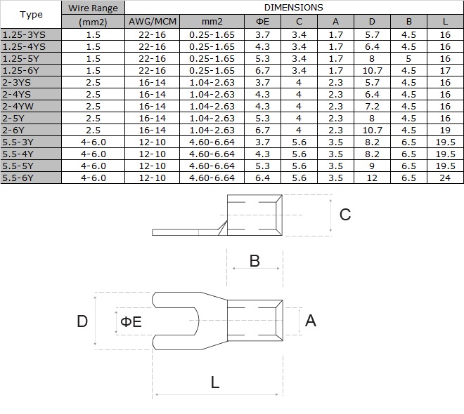 – For optimum electrical and mechanical performance, it is suggested that proper crimping dies and tools are used which cater to their specific uses.
